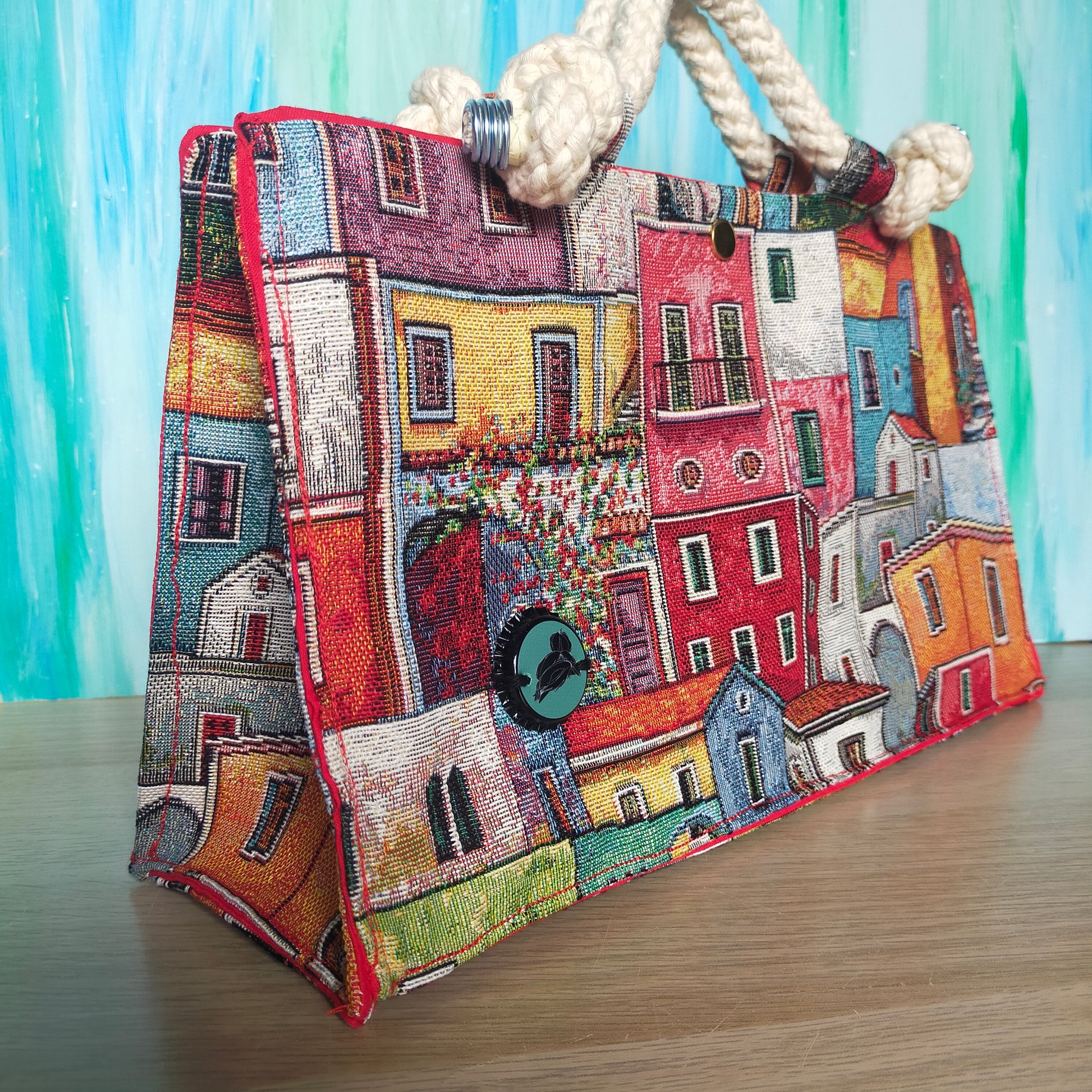 Borsa in tessuto Gobelin di cotone 100% , fantasie astratte e geometriche.