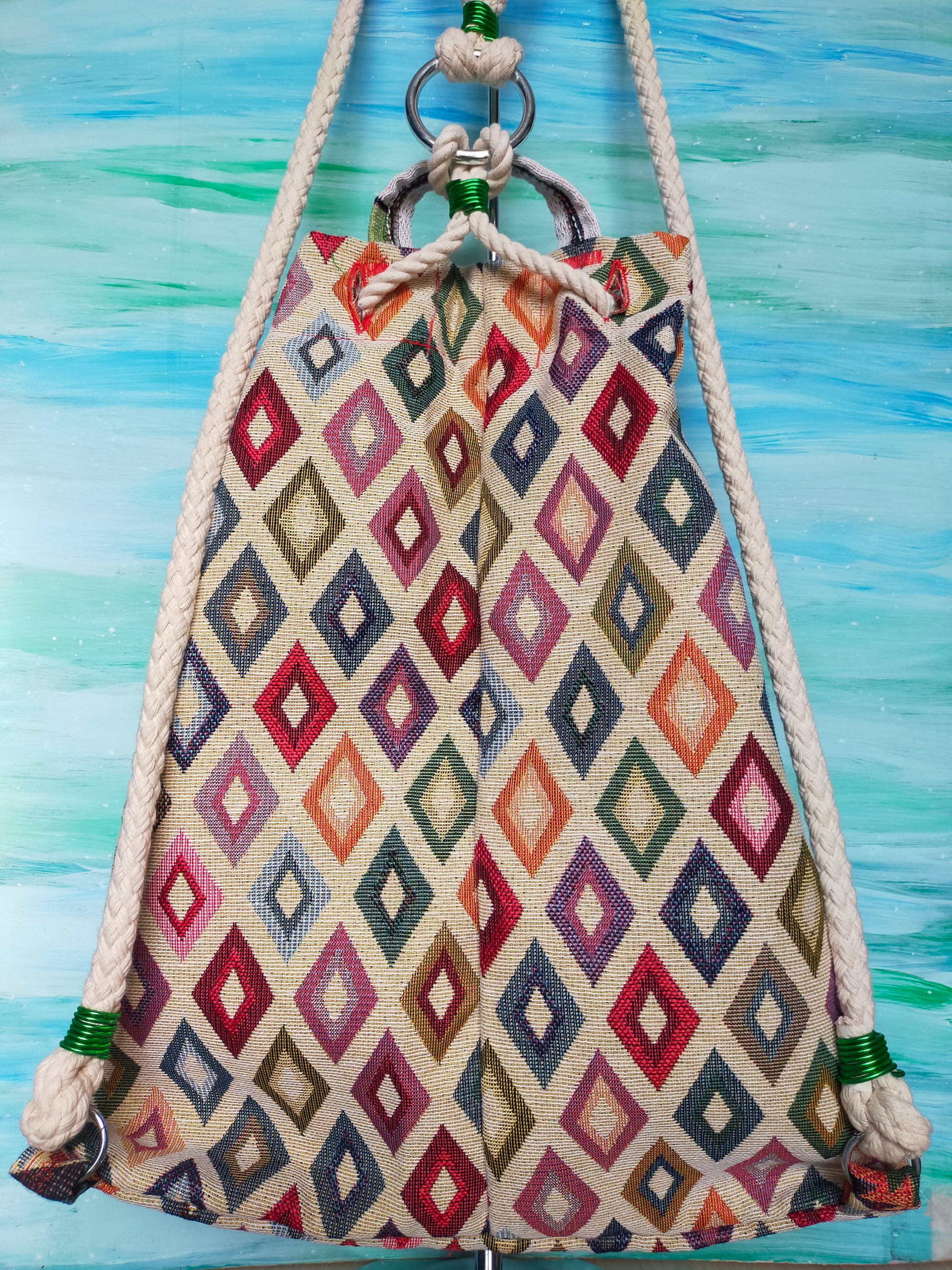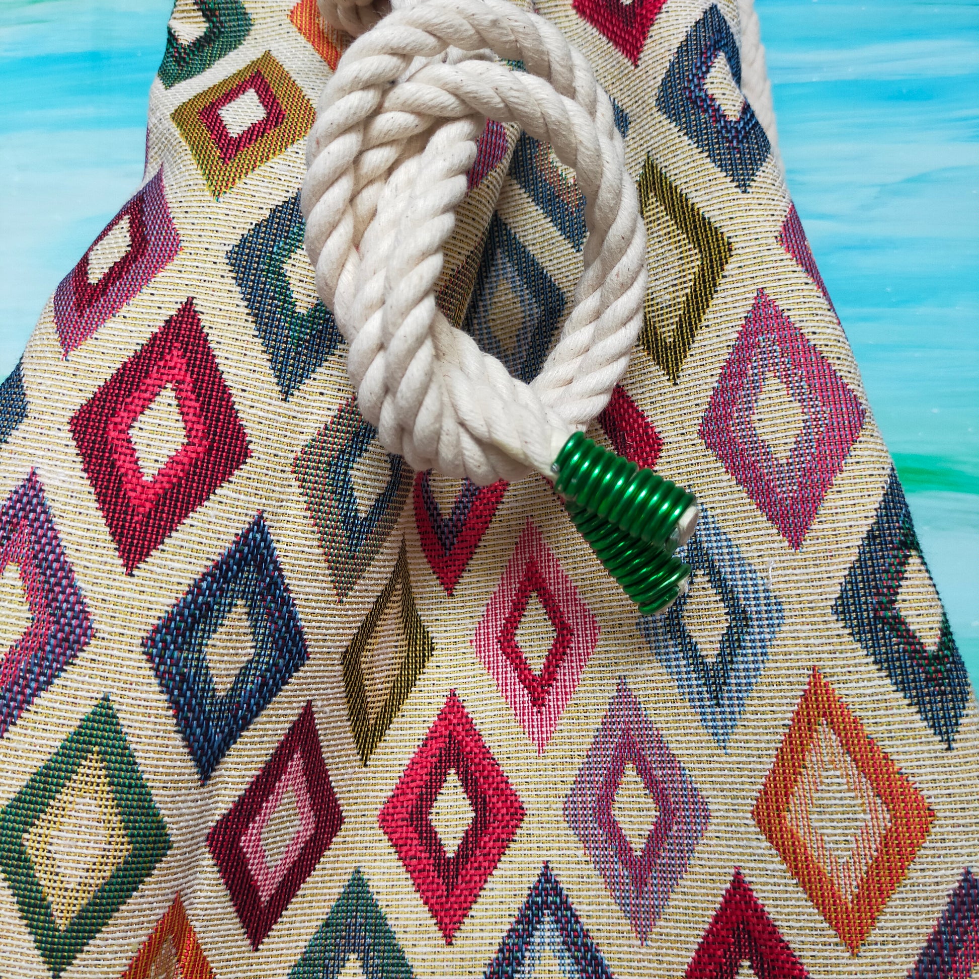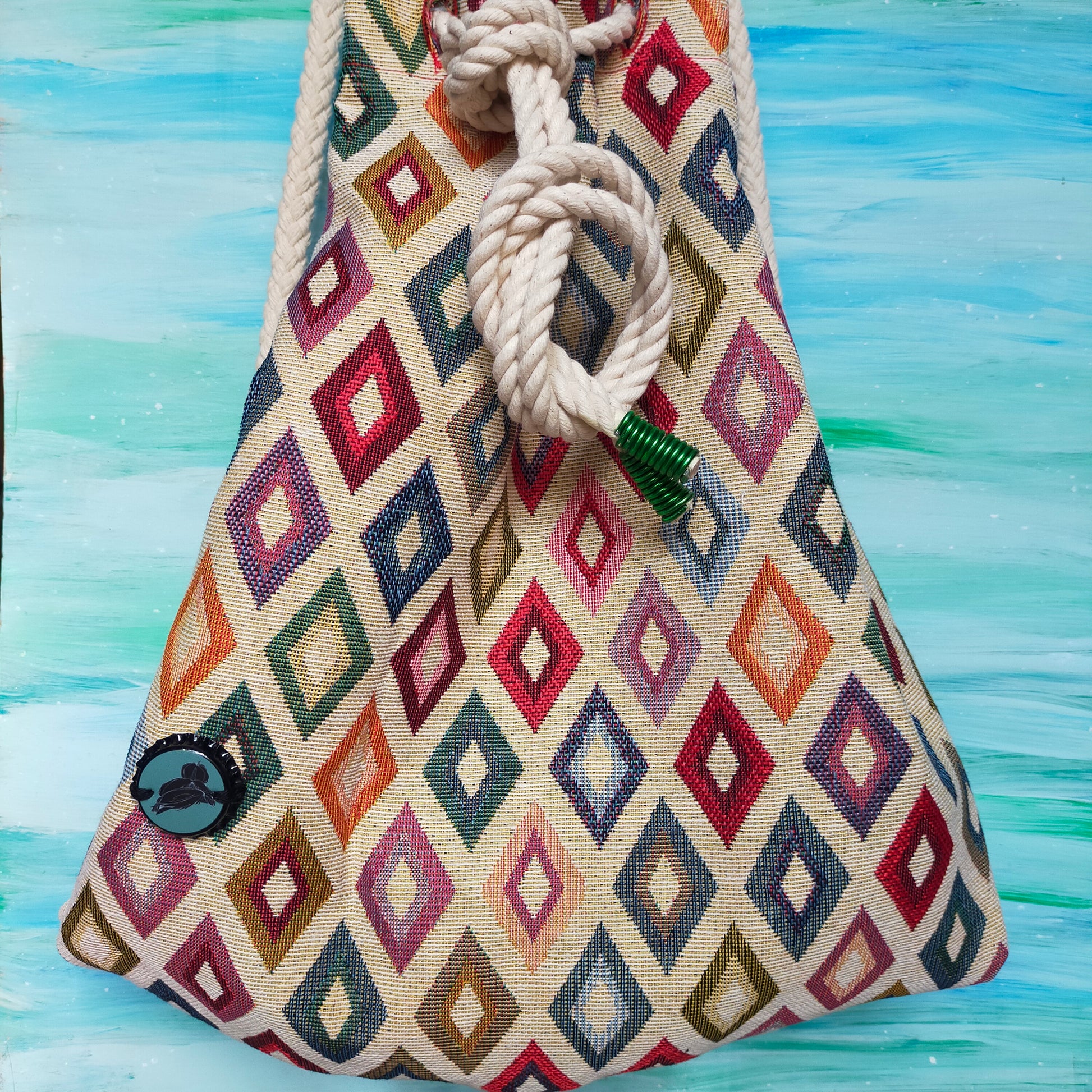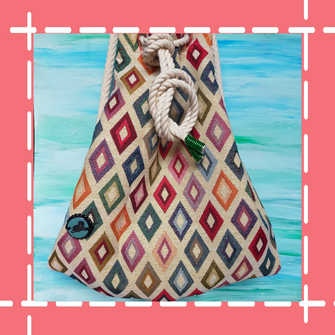 Sacchetta in tessuto Gobelin di cotone 100% , fantasie astratte e geometriche.
