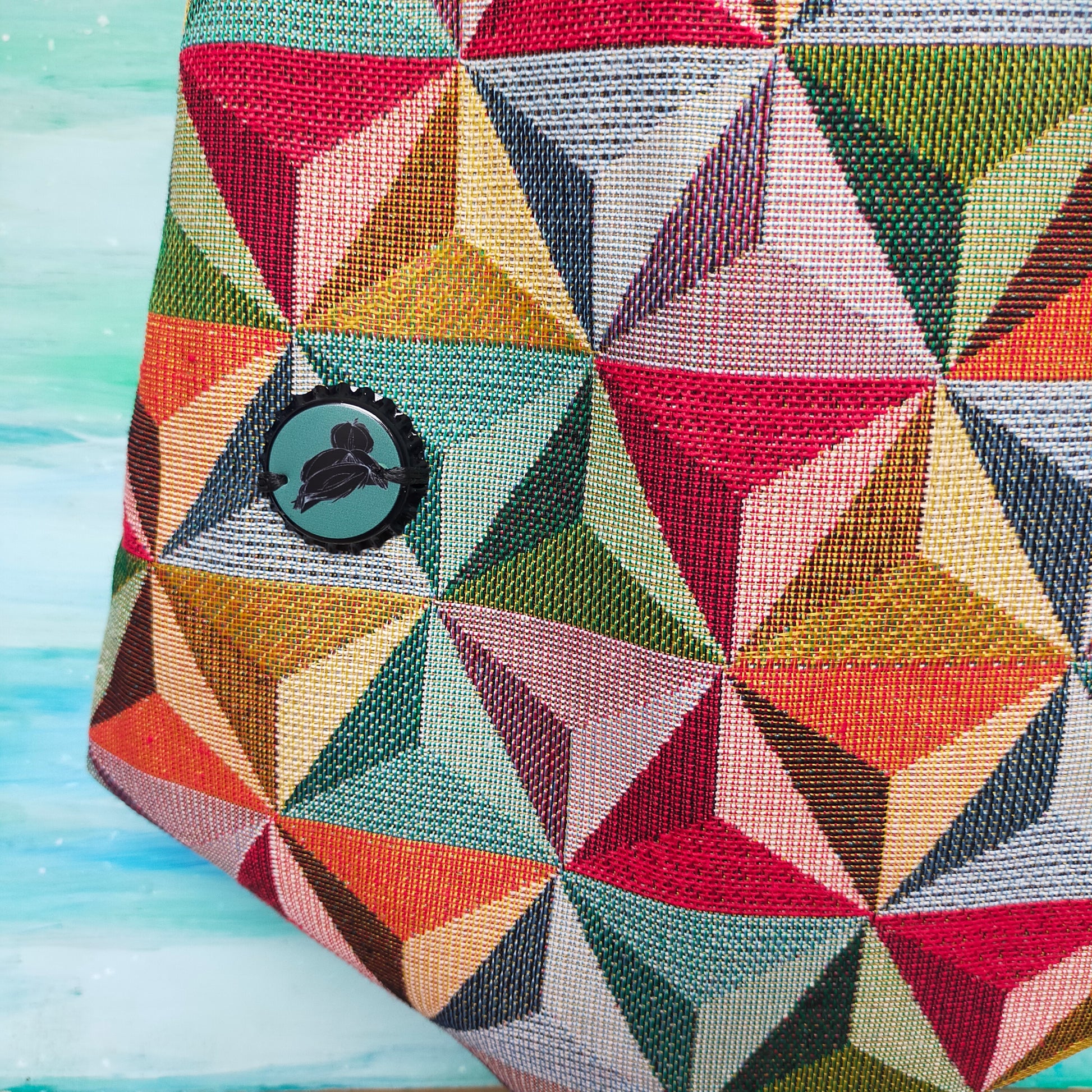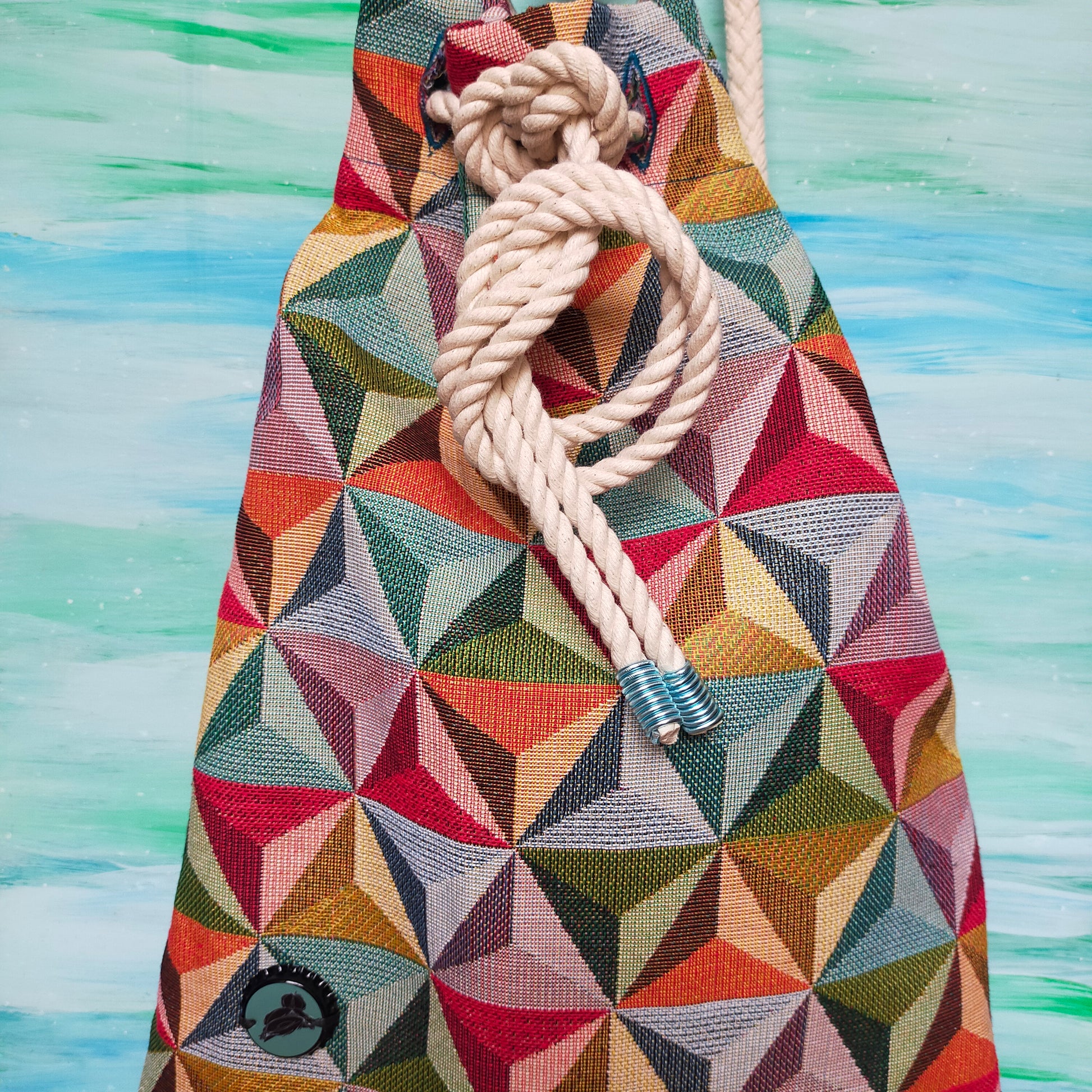 Sacchetta in tessuto Gobelin di cotone 100% , fantasie astratte e geometriche.