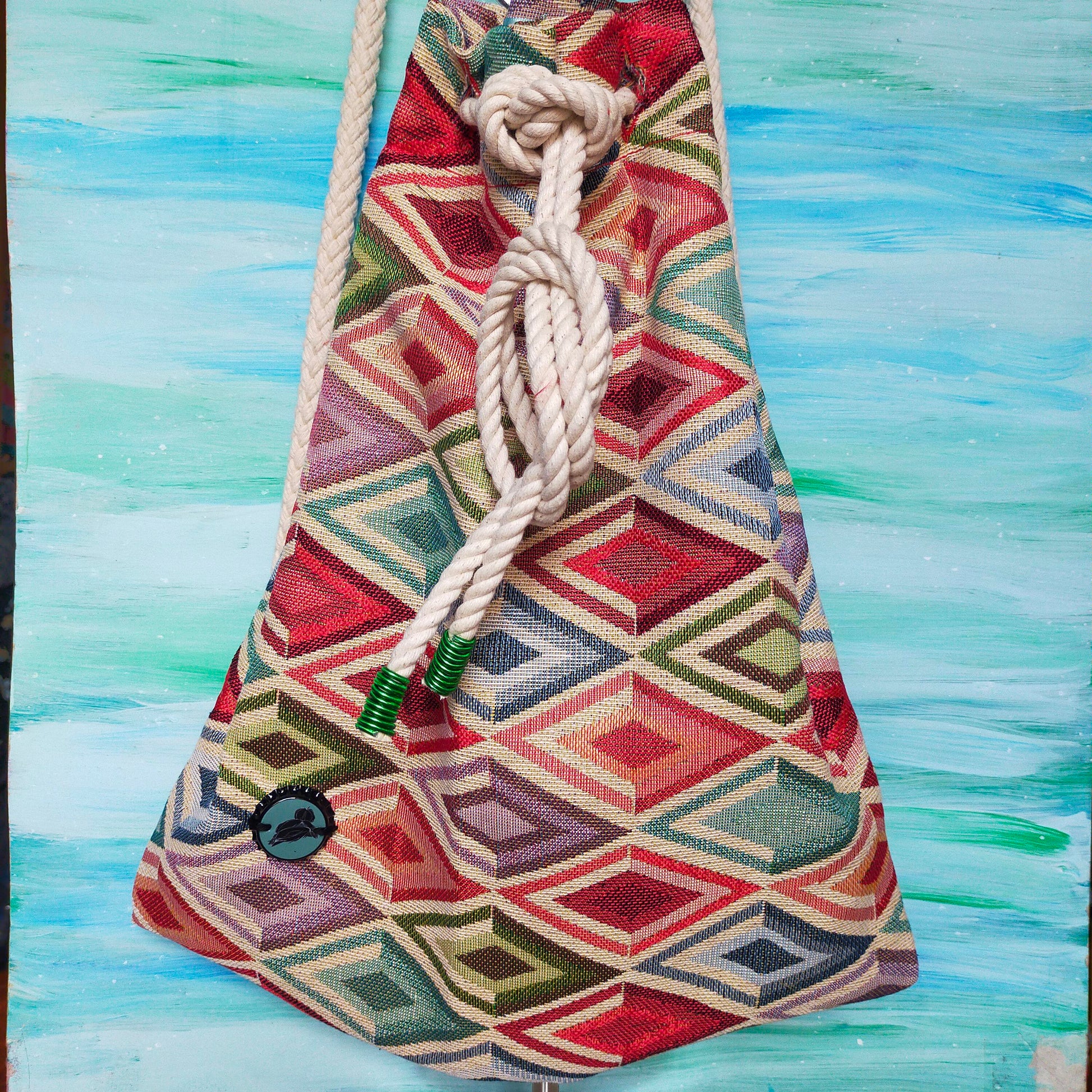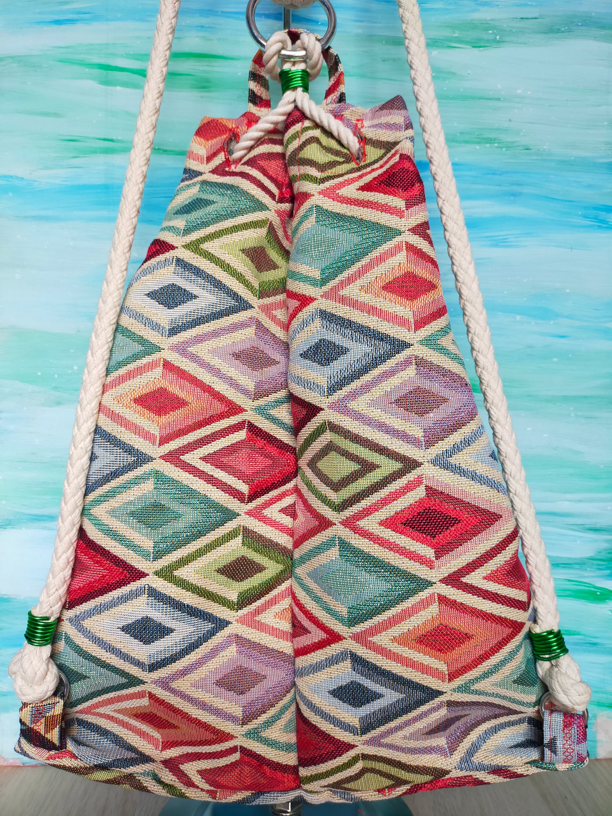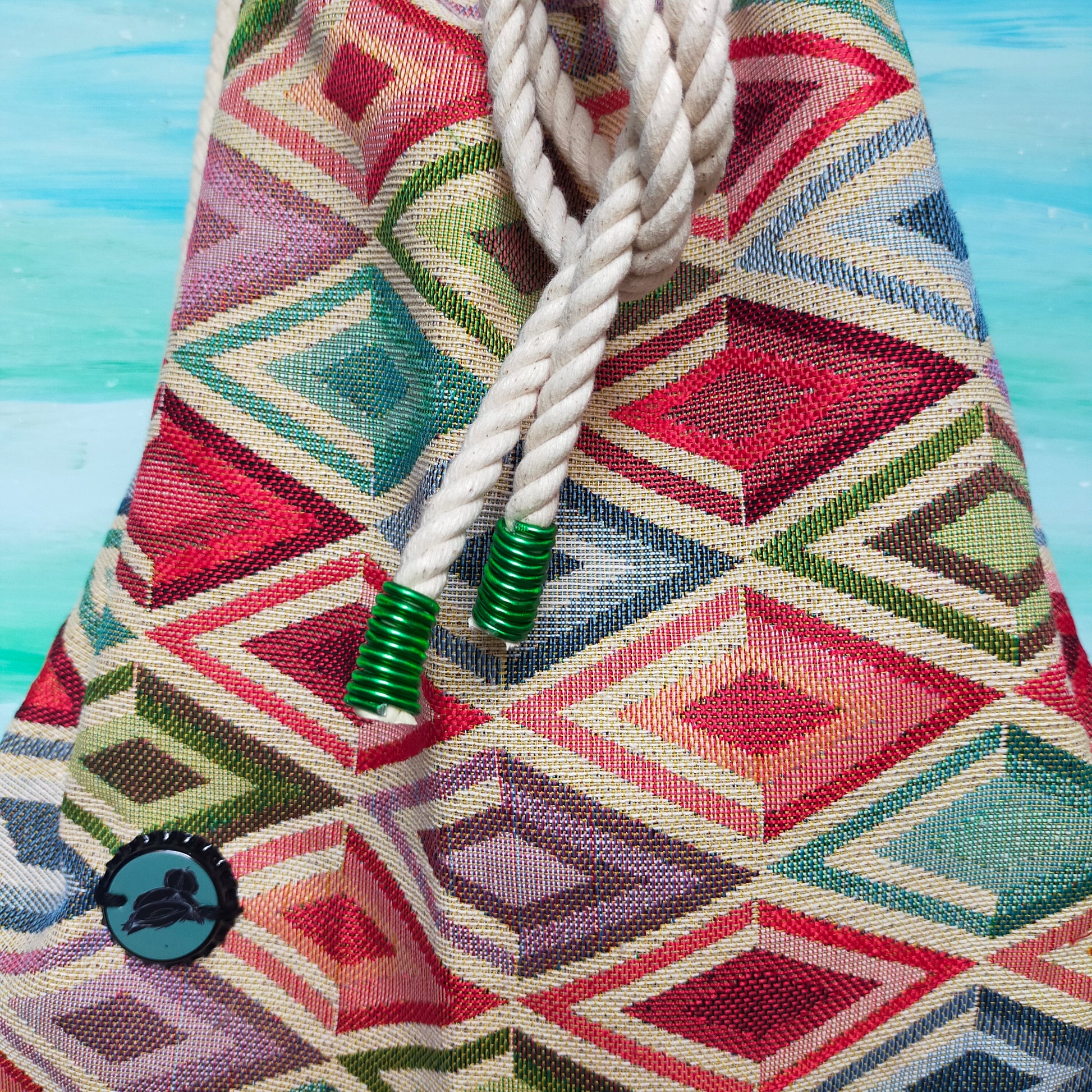 Sacchetta in tessuto Gobelin di cotone 100% , fantasie astratte e geometriche.