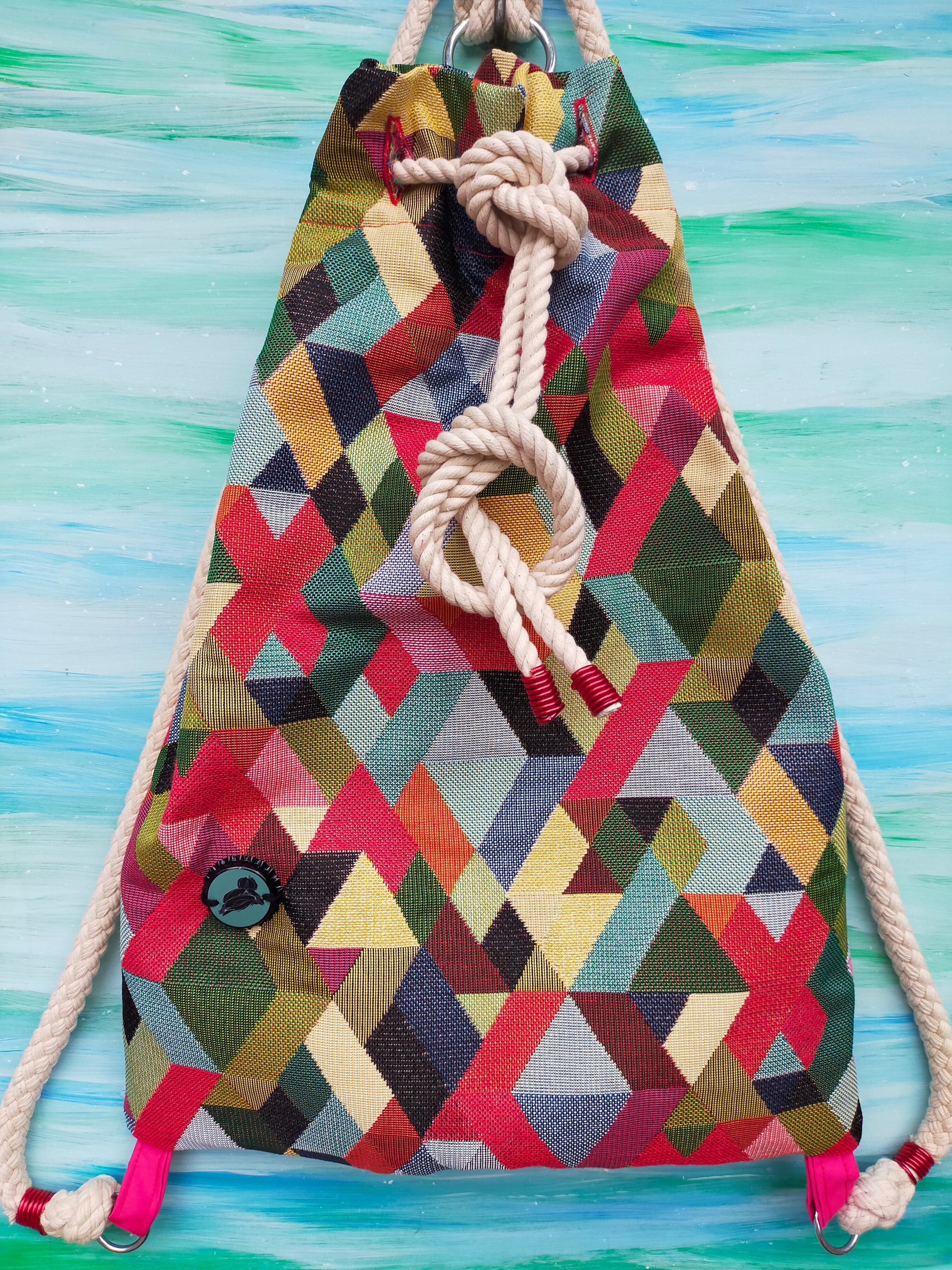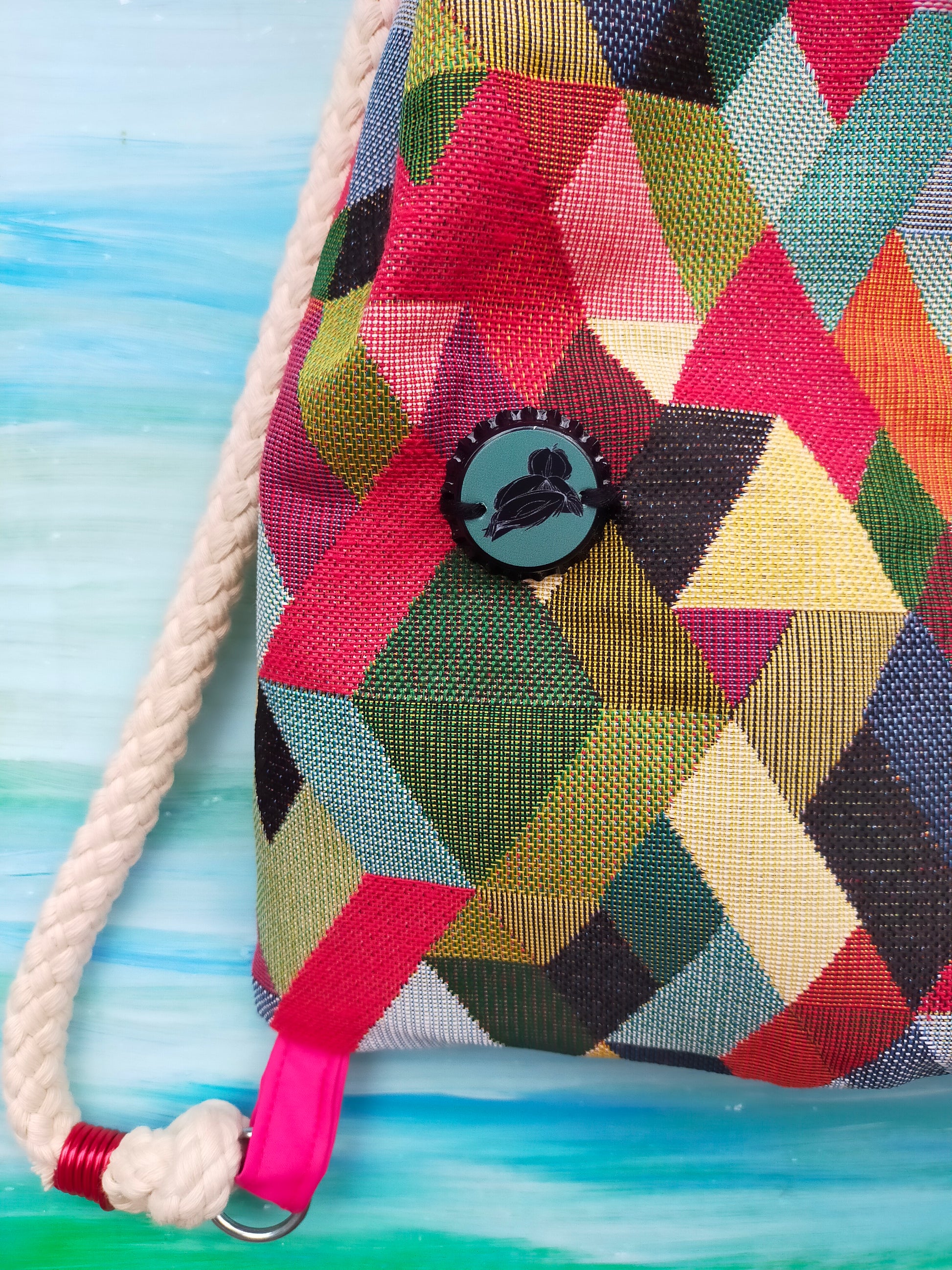 Sacchetta in tessuto Gobelin di cotone 100% , fantasie astratte e geometriche.