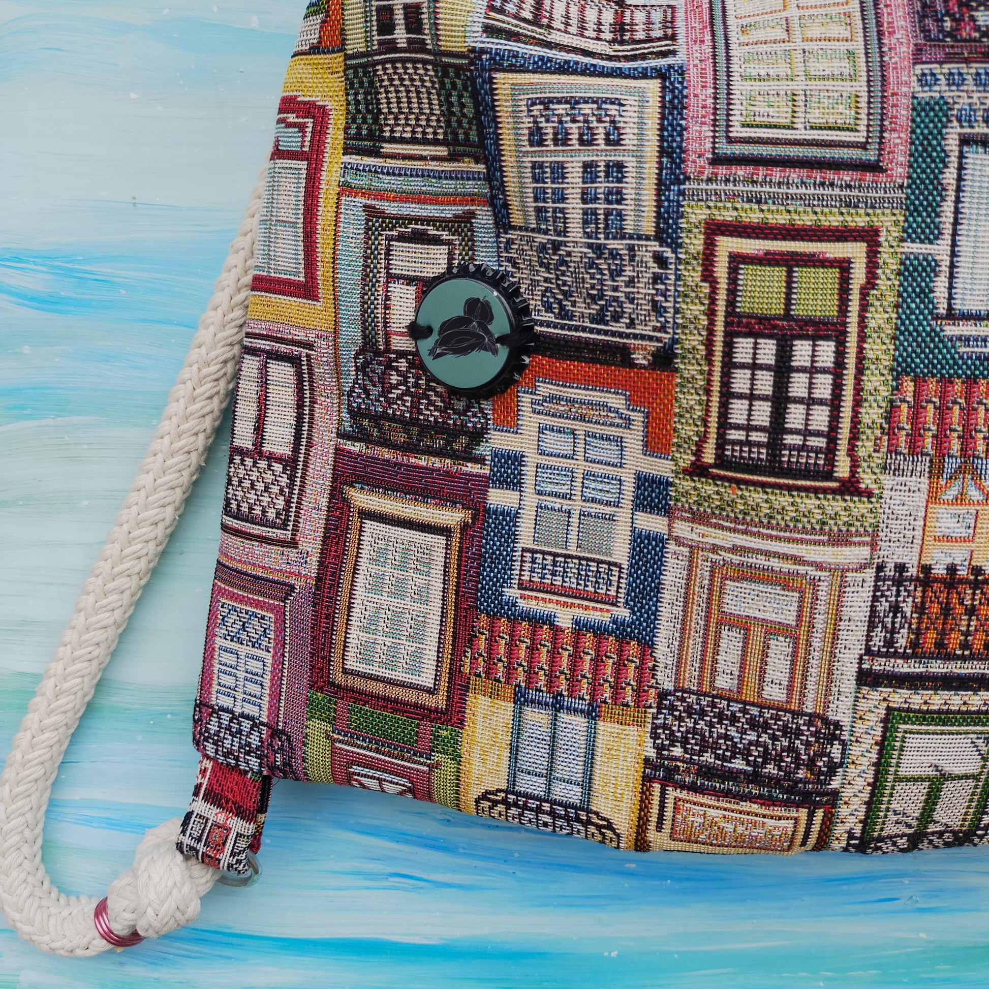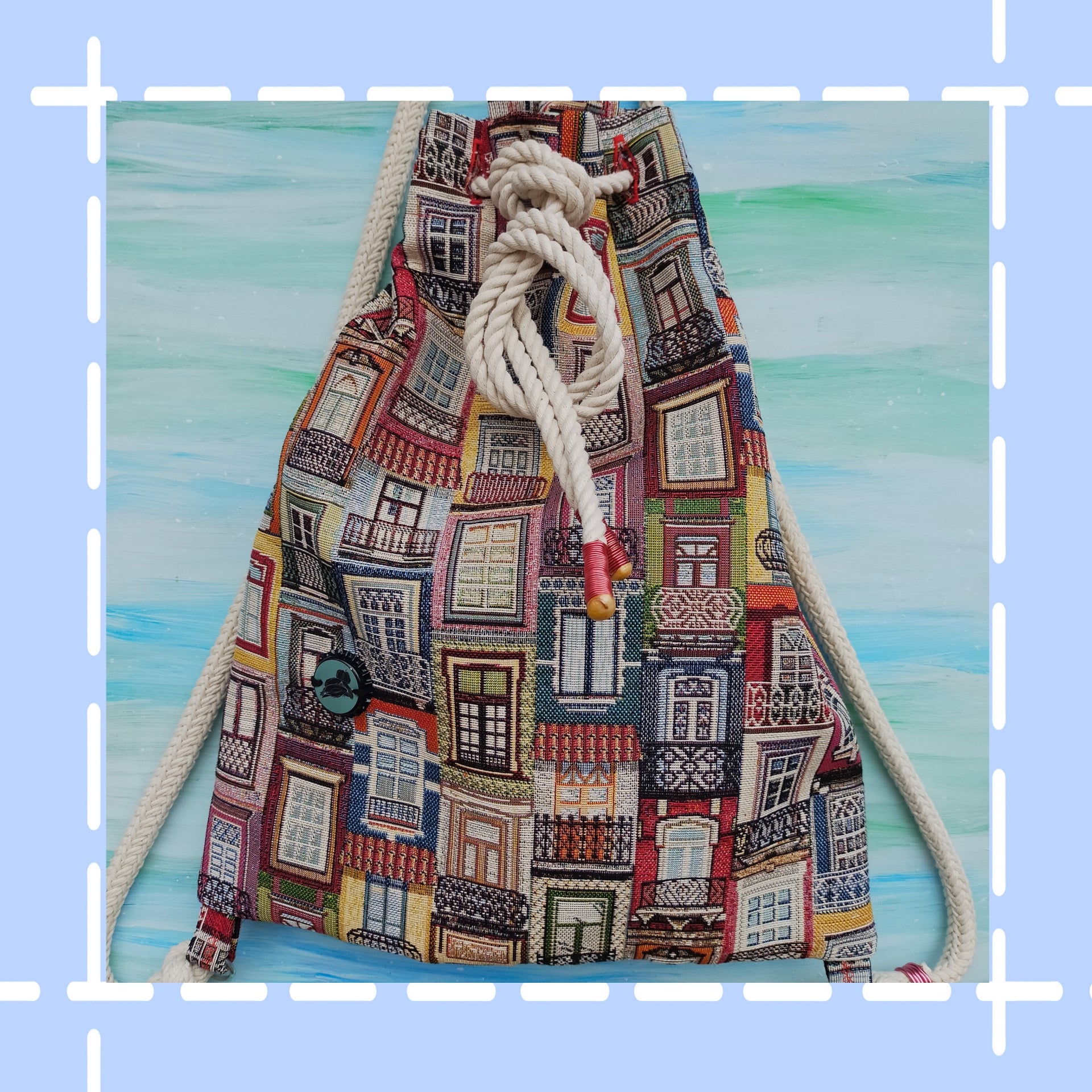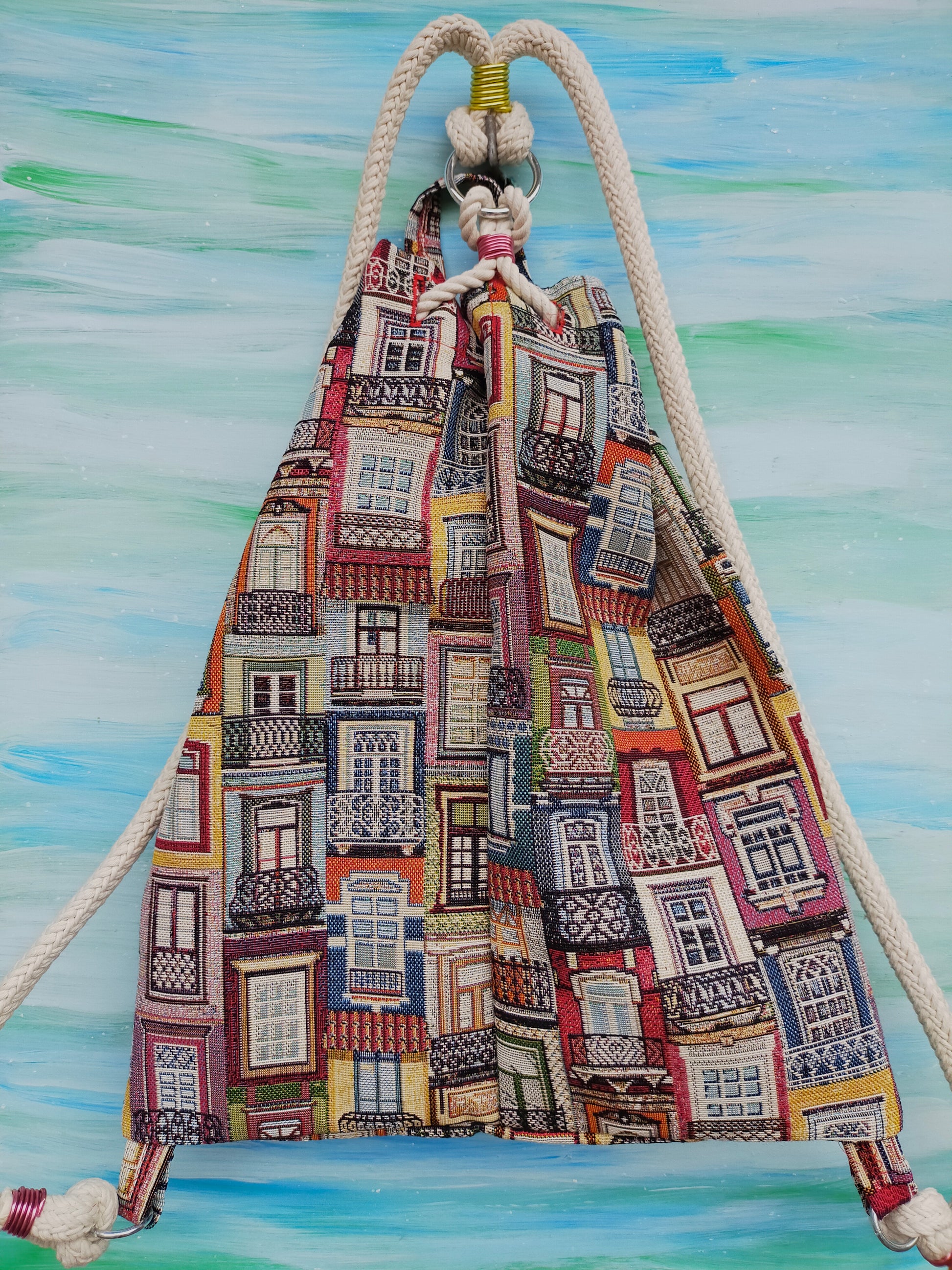 Sacchetta in tessuto Gobelin di cotone 100% , fantasie astratte e geometriche.