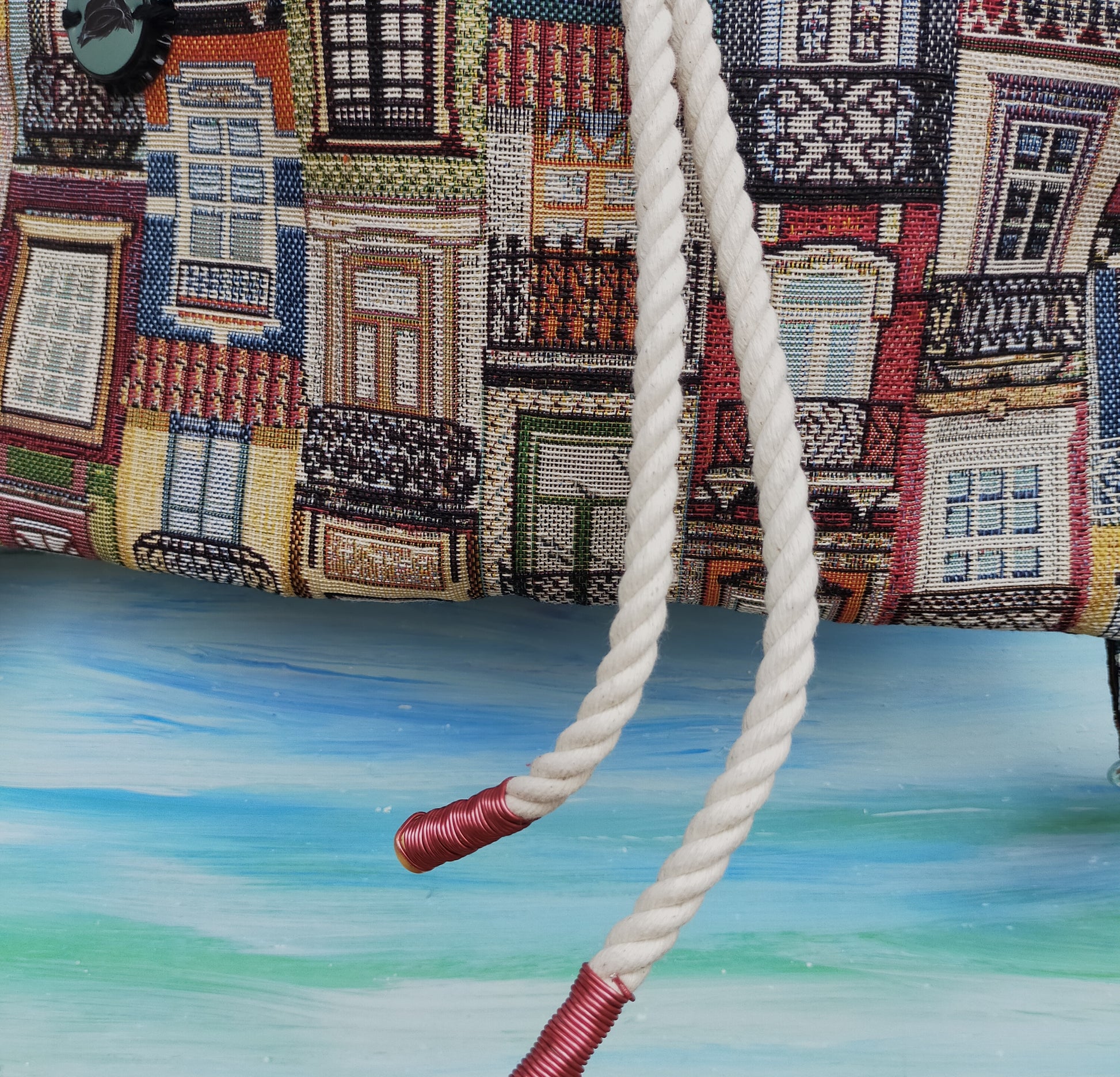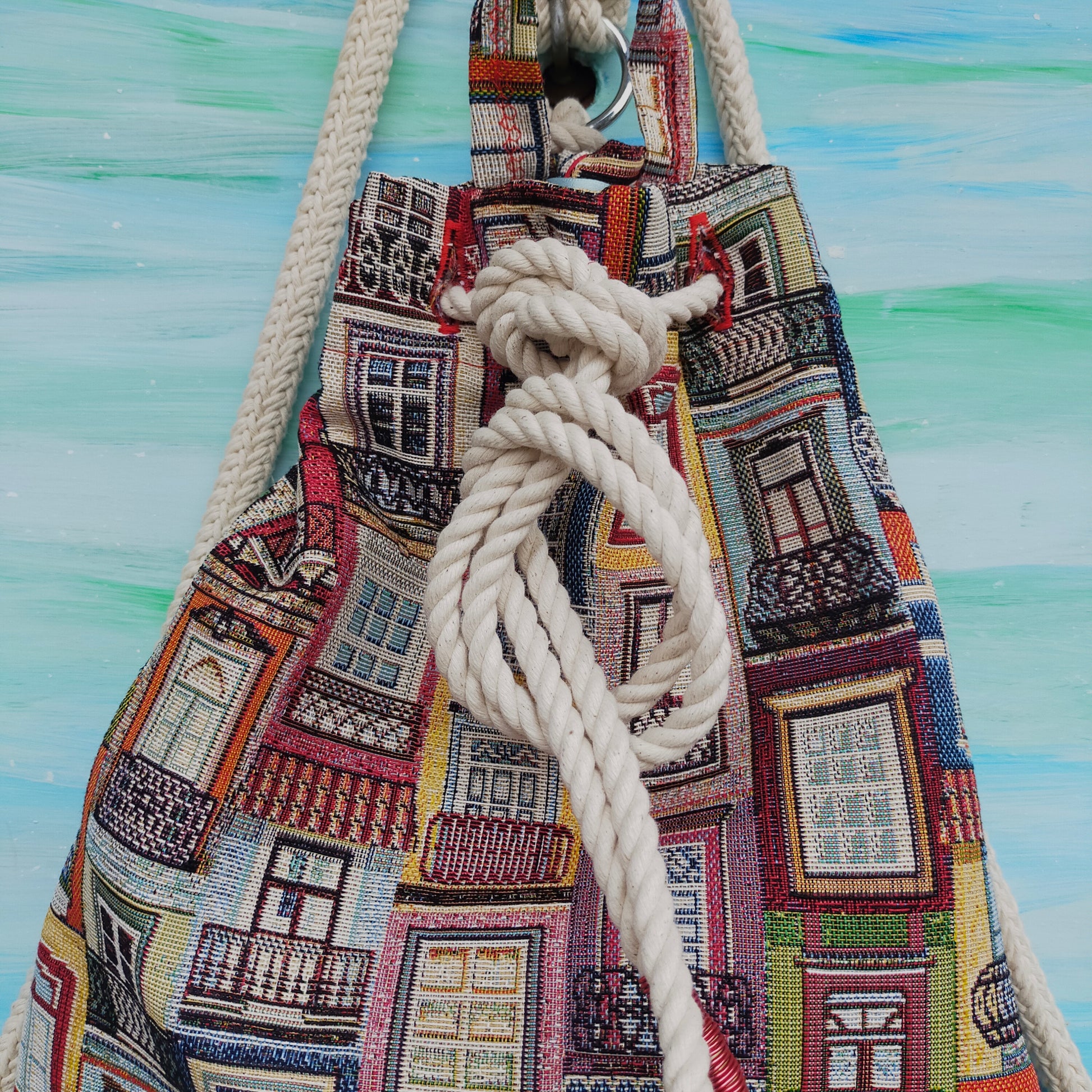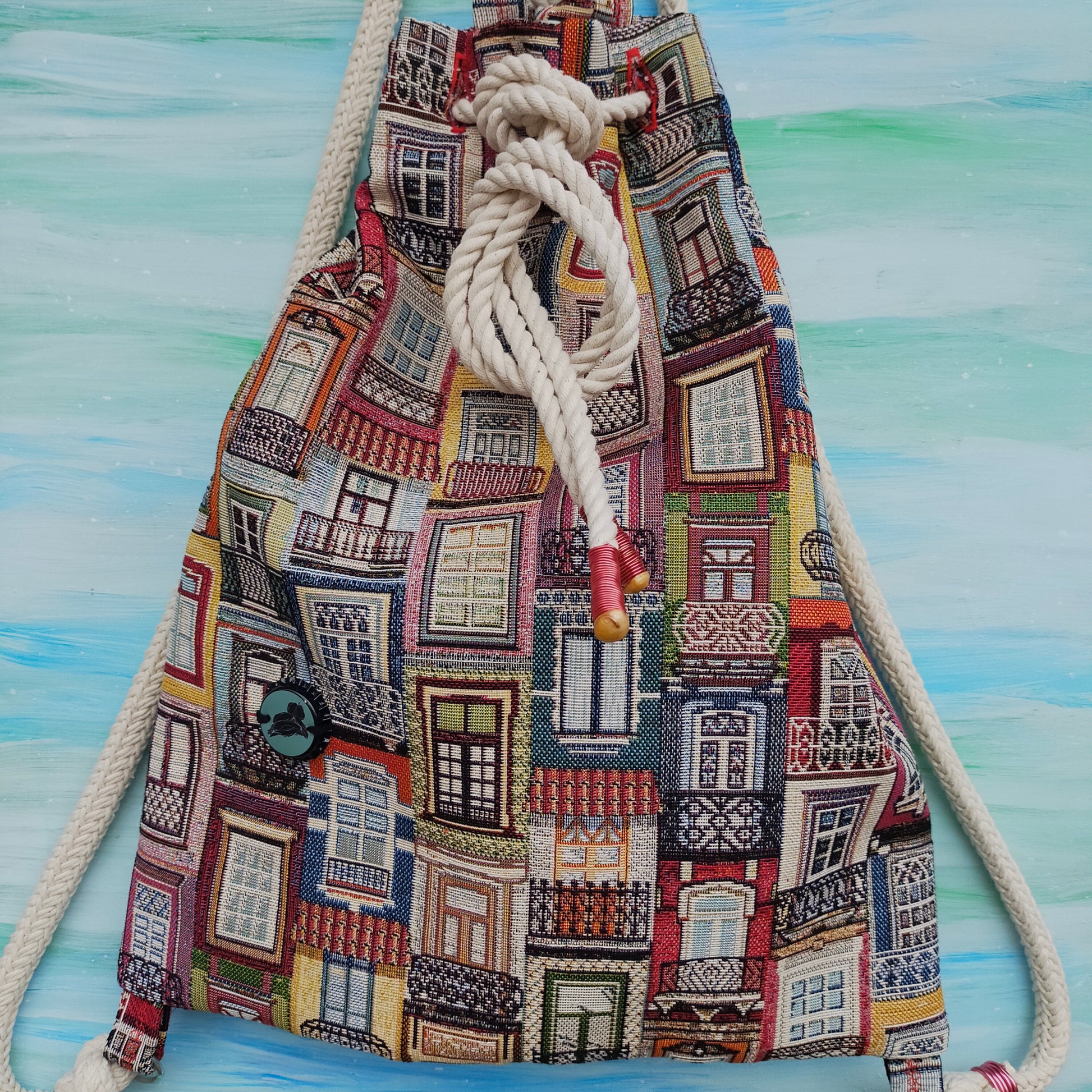 Sacchetta in tessuto Gobelin di cotone 100% , fantasie astratte e geometriche.